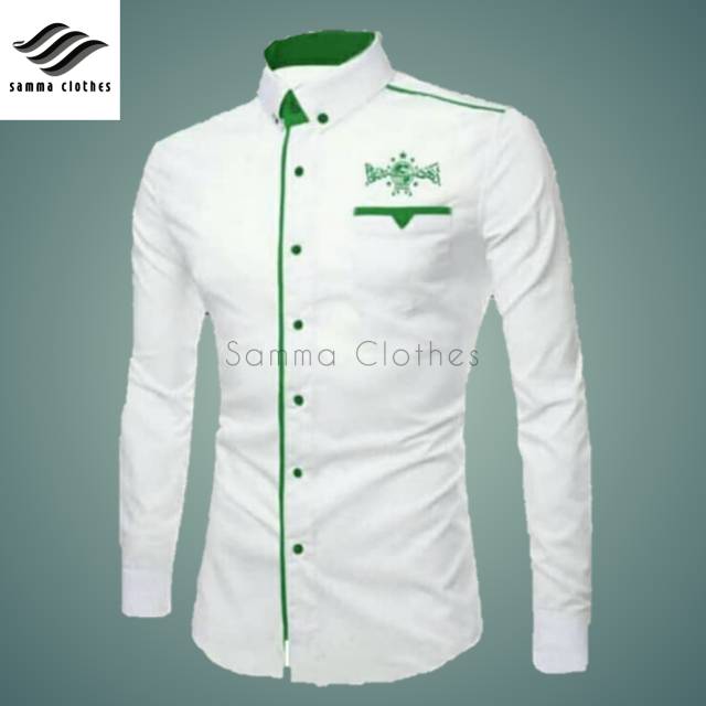 Baju Koko Nu Putih Hijau Bordir Koko Seragam Hadroh Baju Hadroh Baju Gus Azmi Baju Koko Gus Azmi Shopee Indonesia